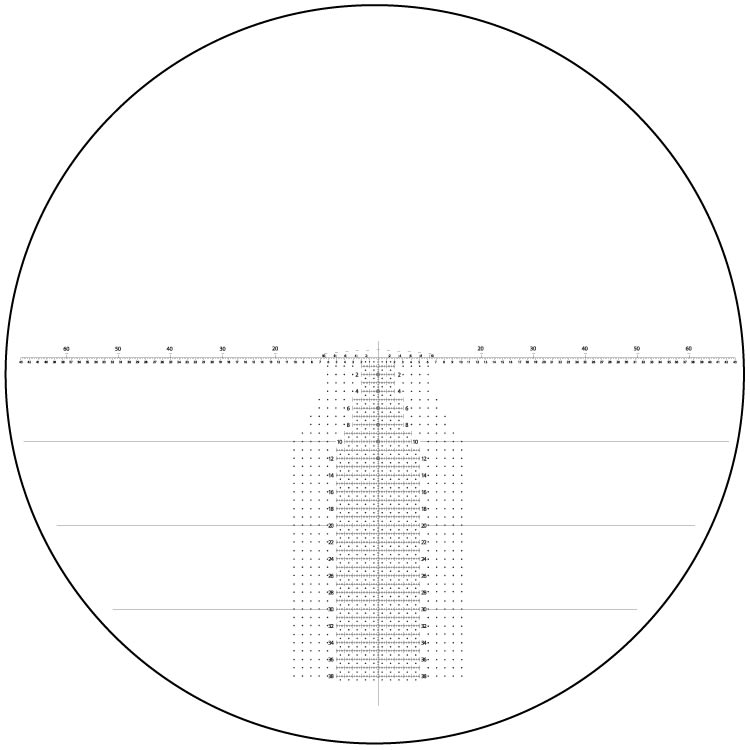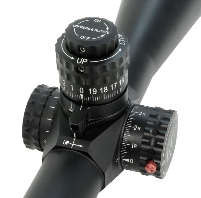 This Nightforce Beast 5-25x56 riflescope with H59 reticle features Zerostop, I4F, .1 Mil-Radian, and a parallax adjustment of 45 meters to infinity.