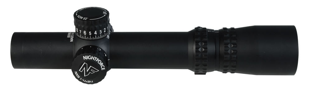 If hunting dangerous game is your passion, there is no better scope on the market to keep the odds in your favor than the Nightforce NXS 1-4x24. The low profile of this compact NXS complements big bore bolt action and double rifles beautifully. In practical application at 1 power, it is as quick as open sights and vastly more precise allowing you to shoot with both eyes open. Your field of view is a full 100 yards providing instant target acquisition and precise shot placement. It is designed for dangerous game at close quarters, in dense brush, and for running targets. Few sport optics in the world will withstand repeated recoil from the largest calibers and the Nighforce NXS 1-4x24 is one of them. Needless to say, being a Nightforce NSX, this scope is equally adept on an AR for tactical applications.
