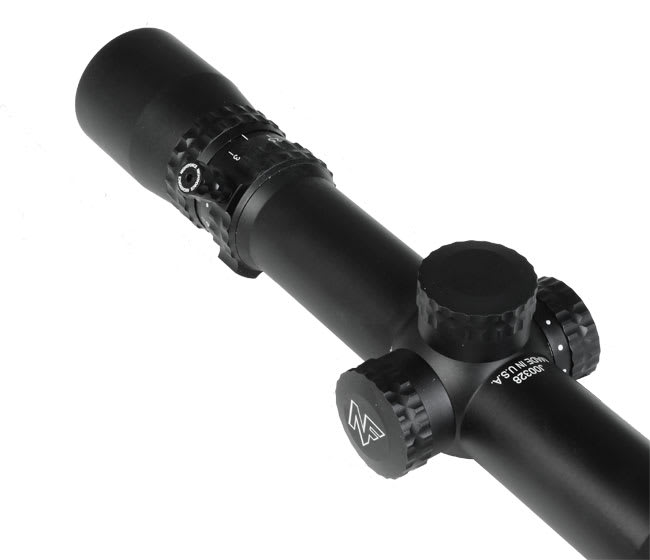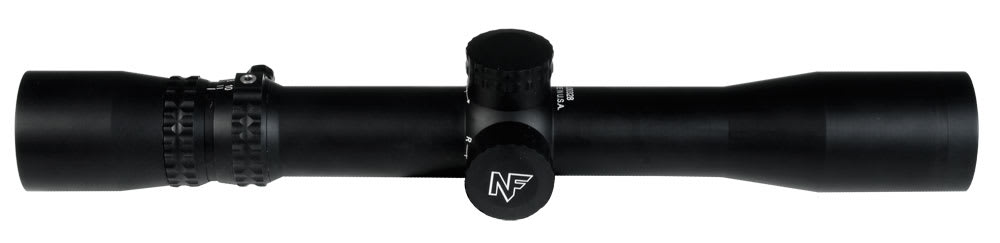 This Nightforce NXS Compact 2.5-10x32 riflescope with an IHR reticle has optimum size-to-weight performance, large exit pupil, and a power throw lever.