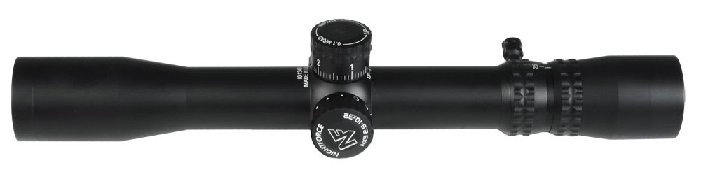 This Nightforce NXS Compact 2.5-10x32 riflescope with a mil-dot reticle has optimum size-to-weight performance, ZeroStop, a large exit pupil, and a power throw lever.