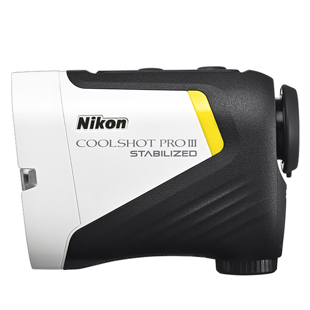 The Nikon Coolshot Pro III Stabilized is a premium laser rangefinder designed for golfers who demand speed, precision, and stability in every shot. Featuring Nikon's advanced stabilization technology, it reduces hand movement for easier targeting while providing fast, accurate measurements from 8 to 1,200 yards. The 6x monocular with multilayer-coated optics delivers a bright, clear view, while ID Incline/Decline mode ensures accurate distance readings even on sloped terrain. With HYPER READ technology, distances are displayed in just 0.1 seconds, and the dual display mode offers both yards and meters at the touch of a button. Compact and lightweight at only 7.2 oz, the Coolshot Pro III is built for all-weather play, offering waterproof, fog-resistant durability in a sleek, ergonomic design.
