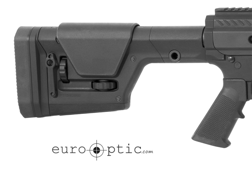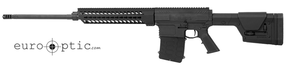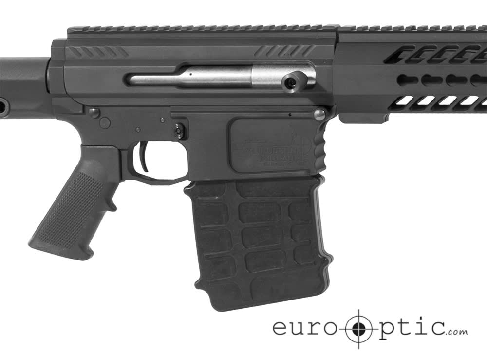 The big boy. This .338 Lapua Noreen Bad News is a piston driven, side charging, semi-automatic rifle which features an A2 pistol grip, mag pul PRS stock, 26" barrel with 1:10" twist, match trigger, and Noreen muzzle brake with 5/8-24 thread.