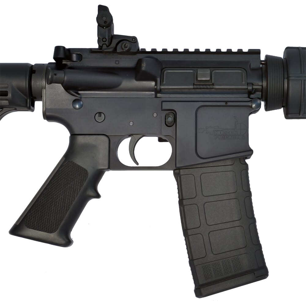 This 5.56x45 (.223 Rem) Noreen BBN223 Rifle features a direct gas impingement operation, 16" barrel with 1:7" twist, collapsible stock, A2 pistol grip, MagPul MBUS flip up sights, mil-spec trigger, MagPul 30 round magazine, and flash hider with 1/2-28 thread.