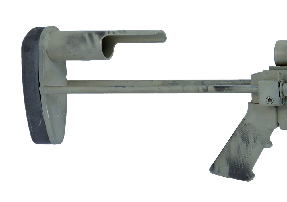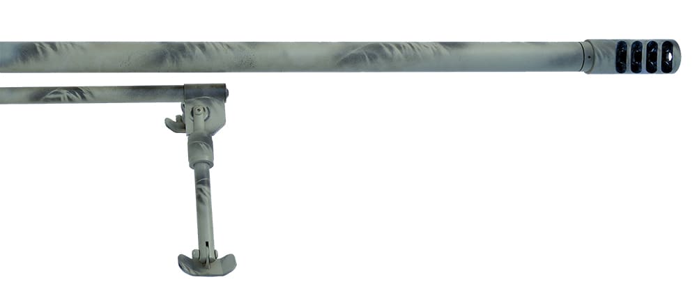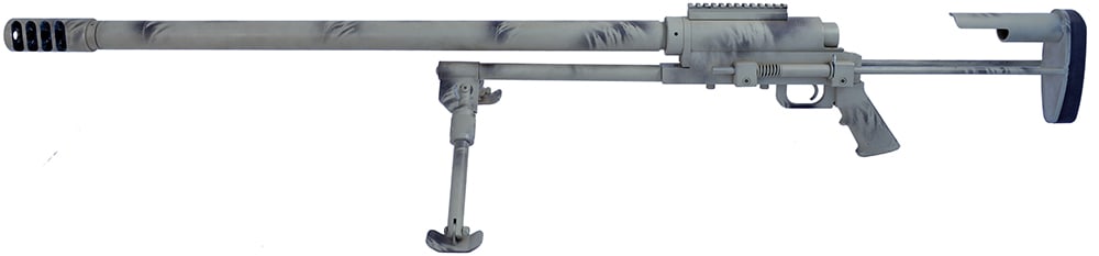 Simple and bomb proof, what more could you need? This camo .50 BMG Noreen ULR, or Ultra Long Range, rifle features a single shot bolt action, 34" barrel with 1:15" twist, Noreen collapsible stock, A2 pistol grip, timney adjustable trigger, and Noreen muzzle brake with 1.25-12 thread.