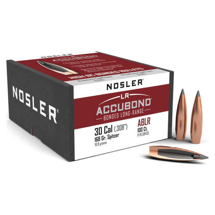 These 30 caliber 168-grain AccuBond Long Range bullets are engineered for deep penetration and high retained energy at extended distances. They offer controlled expansion and superior accuracy. Ideal for long-range hunting of big game.