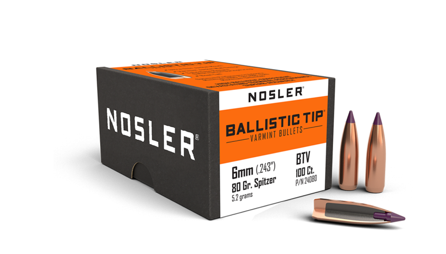 These 6mm 80-grain Ballistic Tip bullets are designed for varmint hunting with explosive expansion and flat trajectories. They deliver high velocity and pinpoint accuracy. A great option for small game and predator control.