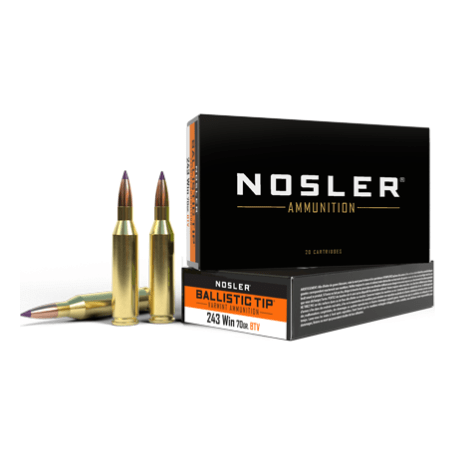 This 243 Win Ballistic Tip Varmint round uses a 70-grain soft point for explosive expansion and flat trajectories. It’s ideal for varmint and predator control with pinpoint accuracy. A high-speed option for small game hunters.