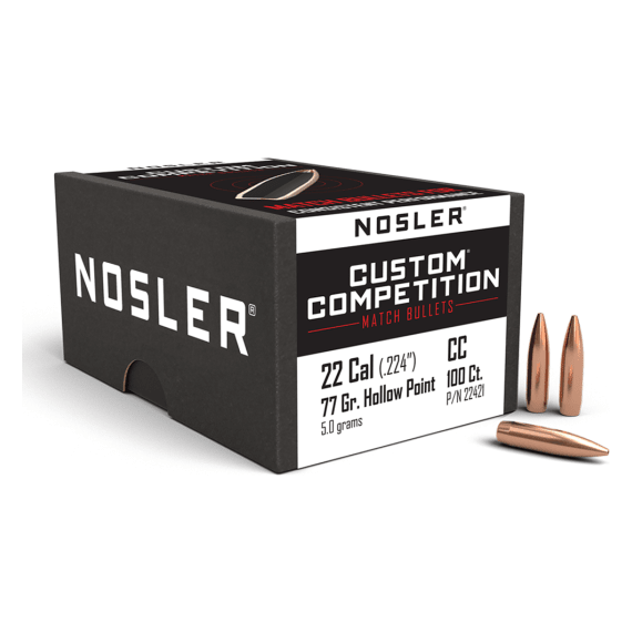 These 22 caliber 77-grain Custom Competition bullets are designed for match-grade accuracy and long-range consistency. The HPBT profile minimizes drag and enhances stability. A top choice for competitive shooters and precision reloaders.