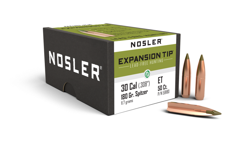 This 180-grain E-Tip bullet in .30 caliber features a lead-free, solid copper design for deep penetration and high weight retention. The polymer tip enhances ballistic performance and initiates expansion.