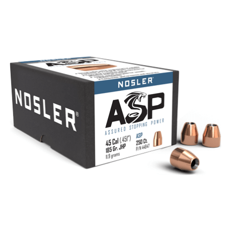 Nosler Hand Gun - Assured Stopping Power (ASP) HG - ASP 45 185g JHP (.451") (250 bulk ct) Bullets 44847