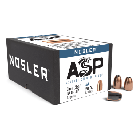 Nosler Hand Gun - Assured Stopping Power (ASP) HG - ASP 9mm 124g JHP (.355") (250 bulk ct) Bullets 43123