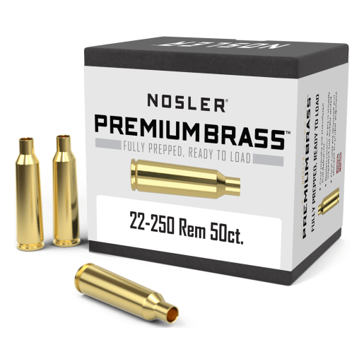Nosler Premium Brass for .22-250 Remington is crafted for high-velocity varmint and target shooting. Each case is weight-sorted and flash-hole deburred for consistent reloading performance. Packaged in a 50-count box for precision shooters.