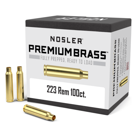 Nosler Premium Brass for .223 Remington in a 100-count box is designed for shooters who demand consistent ignition and case longevity. Each case is carefully inspected and prepped for reliable reloading. Great for both AR-platform and bolt-action rifles.