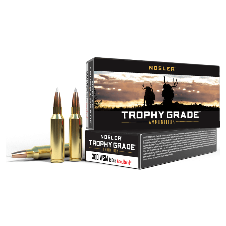 This 300 WSM Trophy Grade round features a 180-grain AccuBond soft point for deep penetration and controlled expansion. It’s ideal for medium to large game with consistent accuracy. A trusted choice for hunters demanding premium performance.