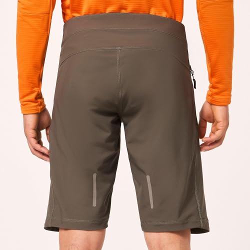 Hit the trail in total comfort. The Elements Short is your all-mountain, everyday essential with 4-way stretch and moisture-wicking material. The ratchet-style, adjustable closure and high-low waistband lets you customize the fit. Laser-cut holes on the inner and outer thighs add a little extra ventilation during your ride. Add a reflective graphic on the back and small Oakley logo for a look that's all function with off-trail cool.