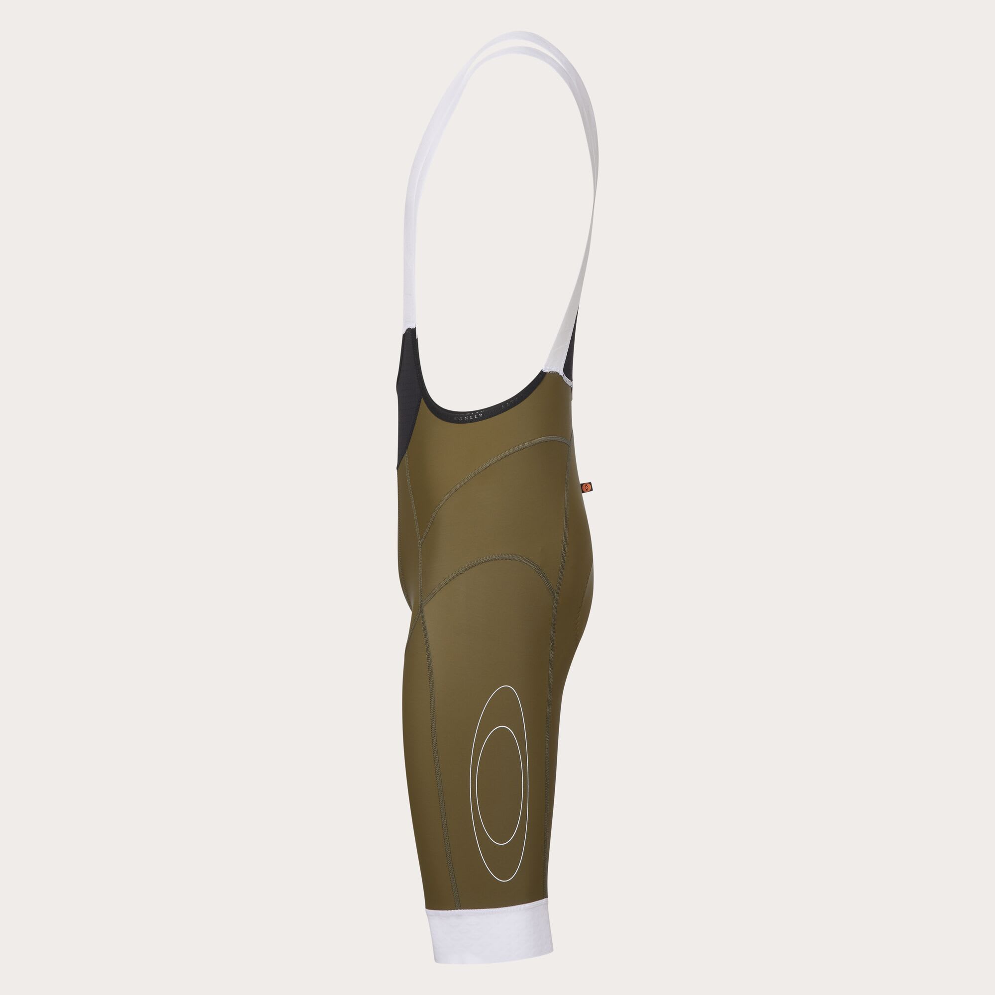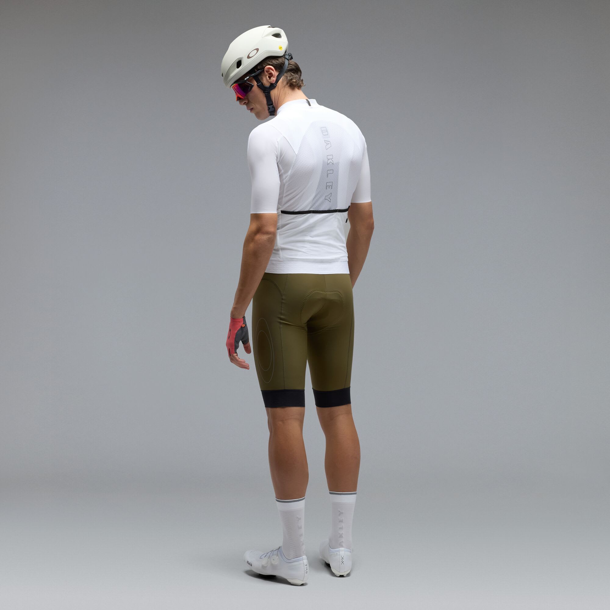 The bib features a supportive chamois pad, providing targeted cushioning for long-distance comfort. The Green colorway adds a modern, understated style, while the Oakley logo signifies a commitment to quality and innovation. Wide, elasticated leg grippers ensure the bib stays in place, and the mesh back panel enhances ventilation for optimal temperature regulation.