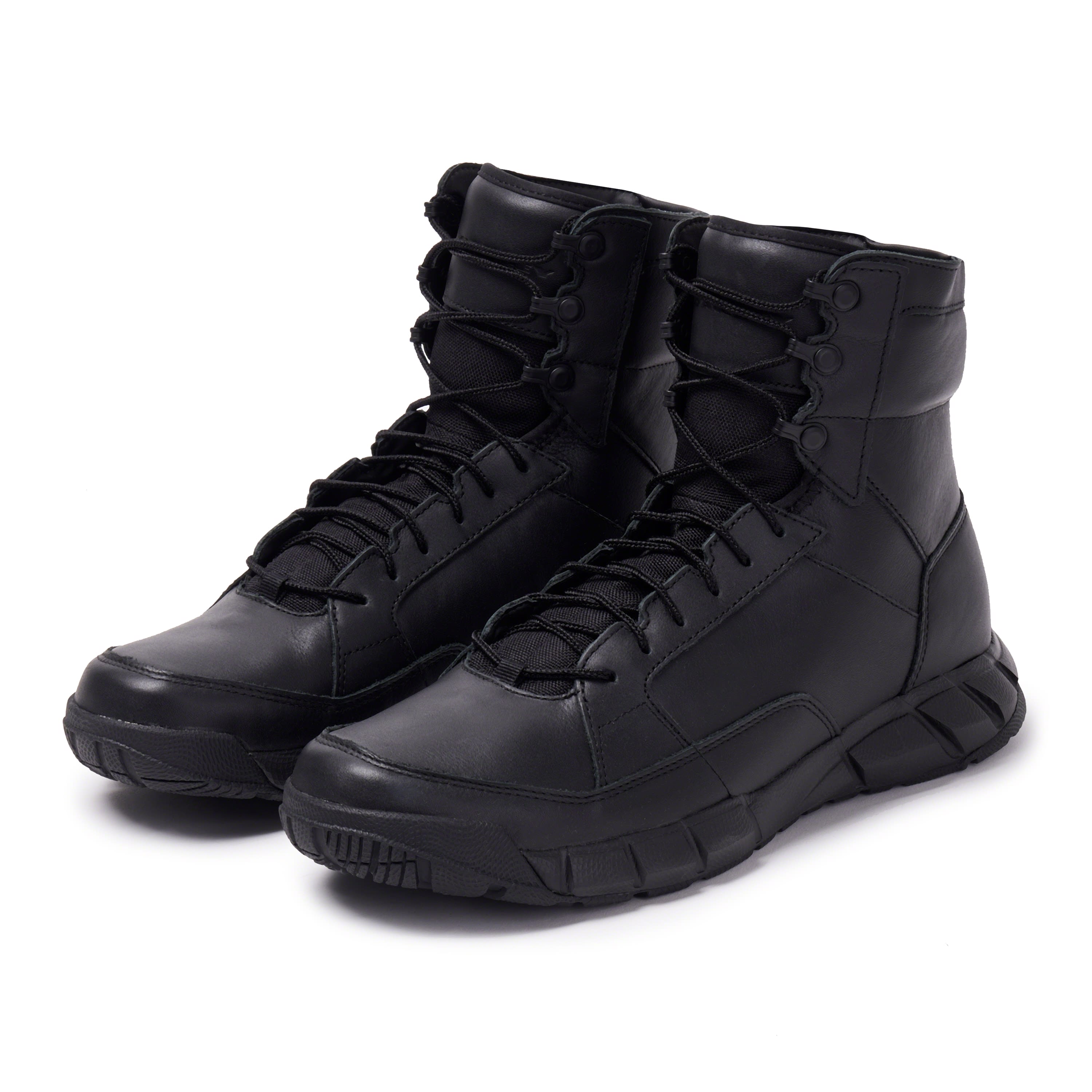 The Oakley LT Assault Leather Boot Black is a tactical‑inspired boot designed to balance durability, comfort, and professional styling for duty, field operations, or rugged outdoor use. Constructed with polishable 1.6–1.8mm full‑grain Nappa bovine leather and a supportive injection‑molded EVA midsole, this 6‑inch boot offers reliable shock absorption and underfoot comfort for extended wear. Its slip‑resistant rubber outsole ensures traction across varied terrain, while the metal speed loop lacing system with anti‑IR coated, 100% braided nylon laces provides a secure and adjustable fit. Built with input from government and law enforcement needs and finished in classic black, this boot delivers a combination of rugged performance and tactical aesthetics suitable for professionals and outdoor enthusiasts alike.
