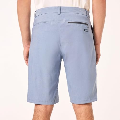 The lightweight, water repellent Oakley Terraint Performance Short is Perfect for a day on the greens where the weather is warm but unpredictible. Constructed from stretch fabric, these pants have two side pockets, and welt and zippered back pockets to hold essential. A branded pen loop gives you quick access and it's finished with an Oakley logo on the back right leg and tag on the left poket side seam.