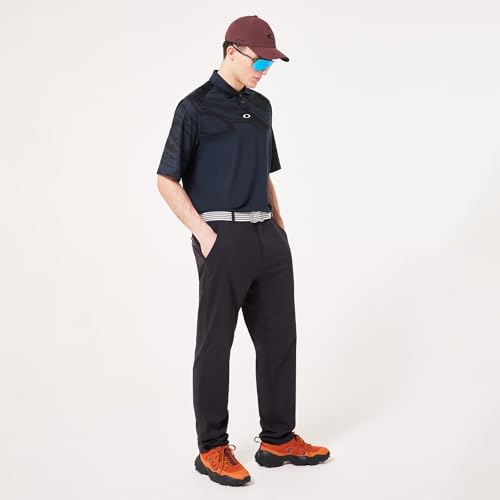 Elevate your style with the Oakley Reduct C1 Duality Polo in Blackout. Compatible with the modern man, this polo combines sleek aesthetics with high-performance features. The unique duality design features a striking contrast between the solid black lower half and the dynamic, patterned upper half, making it a standout piece in any wardrobe. Crafted with premium materials, this polo ensures comfort and durability, whether you're on the golf course or out for a casual day. The breathable fabric keeps you cool and dry, while the classic polo collar and button placket add a touch of sophistication. The iconic Oakley logo on the chest signifies quality and style. Perfect for any occasion, the Oakley Reduct C1 Duality Polo is a versatile addition to your collection. Pair it with your favorite jeans for a casual look or with tailored pants for a more polished appearance. Experience the perfect blend of comfort, style, and functionality with this exceptional polo.