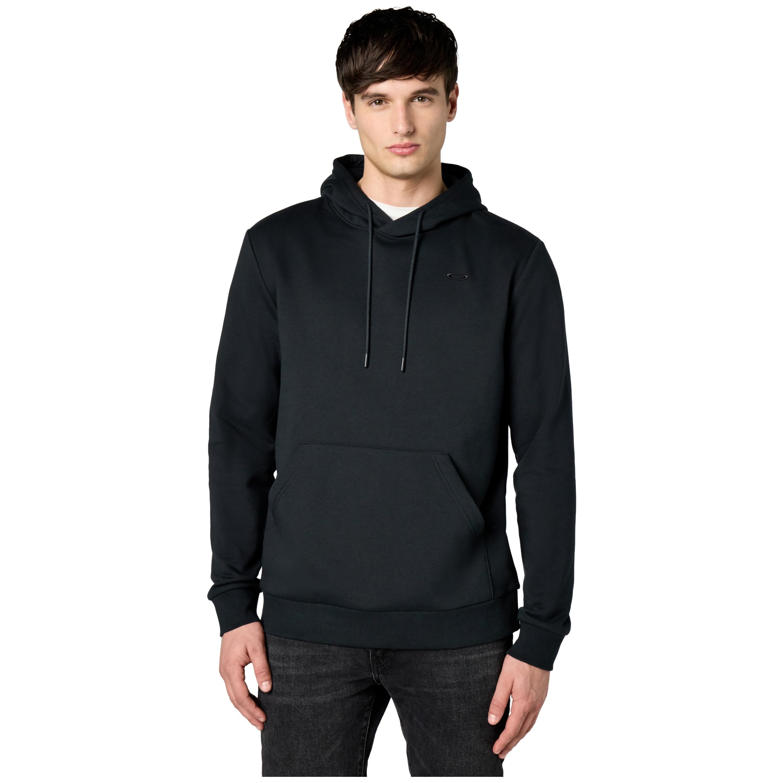 Experience ultimate comfort and style with the Oakley Relax Pullover Hoodie 2.0 in Blackout. Crafted from soft brushed-back cotton and made in part with repurposed materials, this hoodie is designed for those who value both comfort and mindful choices. The pullover style features an Customizable drawstring hood, ribbed cuffs, and hem for a secure, cozy fit that keeps its shape and resists fraying. The roomy kangaroo pocket is perfect for warming your hands or keeping essentials close, while the embroidered Oakley Ellipse logo on the chest adds a touch of signature style.