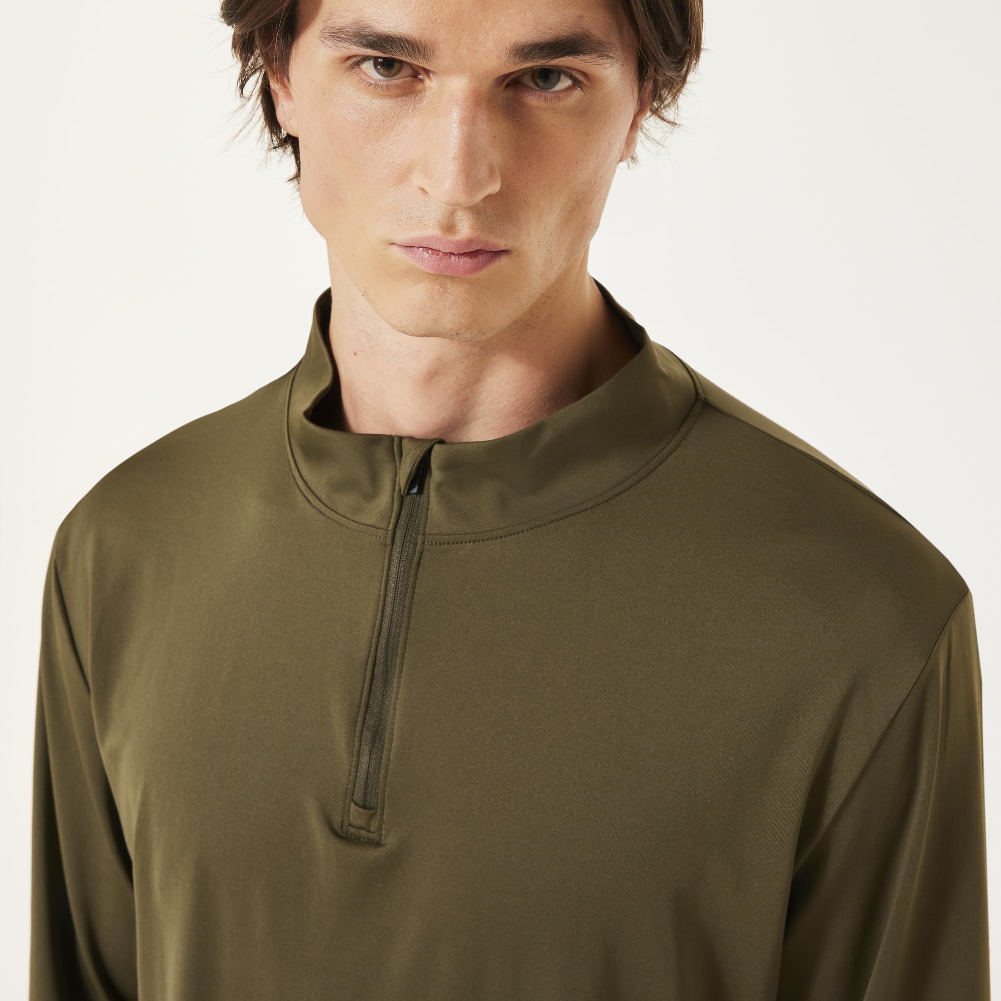 The quarter zip design offers versatile ventilation and easy layering, making it a go-to choice for unpredictable weather. The Dark Brush color adds a sleek, modern touch that pairs effortlessly with your favorite gear. Subtle Oakley branding on the chest adds a mark of authenticity and performance heritage.
