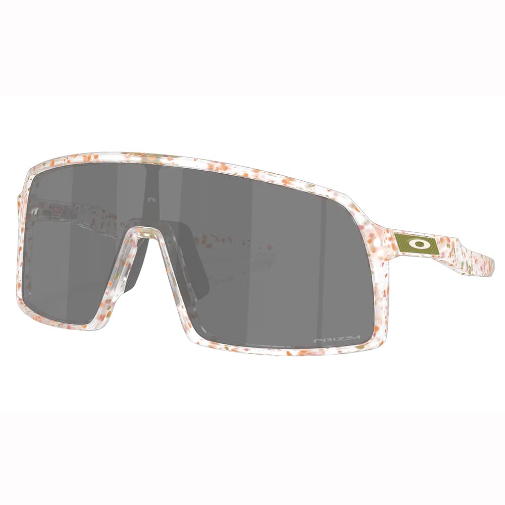 The Oakley Sutro Terrazzo Collection OO9406-C737 sunglasses feature a bold and versatile design tailored for cyclists and active individuals. The clear Terrazzo frame is adorned with an earthy three-color splatter paint treatment, evoking the natural beauty of fern, ginger, and toadstool hues. These sunglasses are crafted from lightweight O Matter frame material, ensuring durability and all-day comfort. The Unobtainium nosepads increase grip with perspiration, keeping the eyewear securely in place during intense activities. Equipped with Prizm Black lenses, these sunglasses enhance color, contrast, and detail, providing an optimized visual experience. With a wide fit and high bridge design, the Sutro Terrazzo Collection offers a stylish and functional eyewear solution for both on and off the bike.