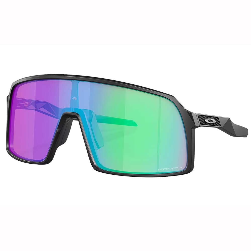 The Oakley OO9406-A137 Sutro sunglasses feature Prizm Golf lenses and a matte black frame, designed for cyclists seeking a bold and versatile look. The high-wrap shield enhances vision and protects from the elements, while the lightweight O-Matter frame ensures all-day comfort. Unobtainium nosepads increase grip with perspiration, keeping the eyewear securely in place. These sunglasses offer enhanced color and contrast with Prizm Lens Technology, making them ideal for both on and off the bike.
