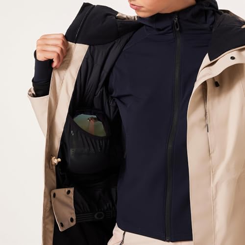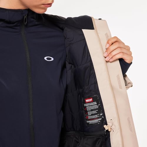 Womens Sub Temp RC Gore-Tex Jacket. Stretch Gore-Tex insulated jacket, Insulation: 80gr body, 60gr sleeves. Hydrofree DWR. Fully taped seams. Front zip with store flap. Adjustable helmet compatible hood with bonded peak. Chest and side pockets with waterproof zips. Raised heat transfer Oakley Ellipse logo on front flap
