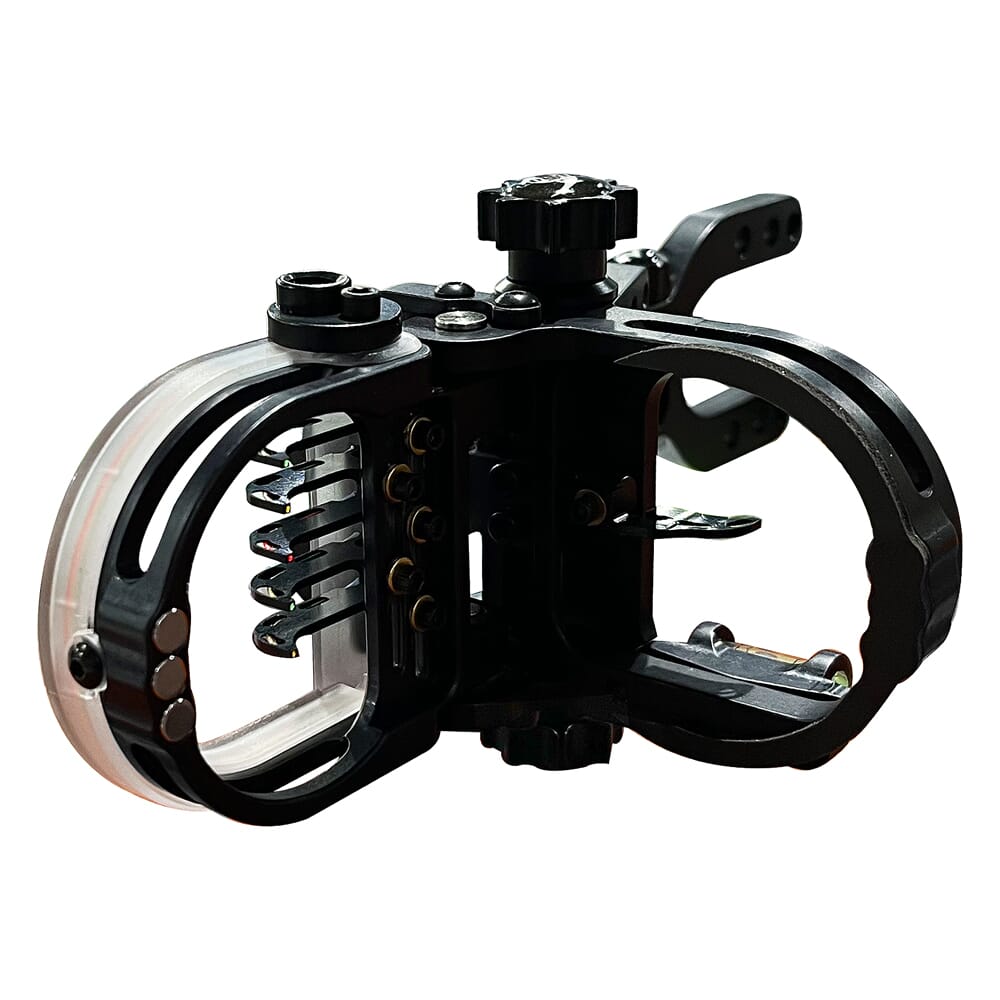 From 3D tournaments to hunting, Option Archery’s line of premium Bow Sights reigns supreme. One of their most notable features is their ability to switch between a single-pin and a multi-pin configuration without having to change sights This allows you to enjoy the benefits of both types of sights in the same bow setup. When not in use, the multi-pin sight folds away to allow you to use the adjustable single-pin for an unobstructed view of your target, but it can quickly be rotated into view and secured with powerful magnets. The multi-pin sight features dual tracks for tighter pin gaps, allowing you to precisely sight in your yardage, and pins can be removed to suit your individual needs. These sights also feature 3rd axis leveling, have micro windage/elevation adjustments, and the entire sight frame is moveable to provide course adjustment to maximize your yardage and range. Other features include a glow ring to help find your sight frame in low light environments, and a light can be added to enhance the performance of the fiber optics. In addition, these sights are precisely machined out of solid aluminum including the pins (unlike sights of a lesser quality that use plastic), and all components are proudly made in the U.S.A.
