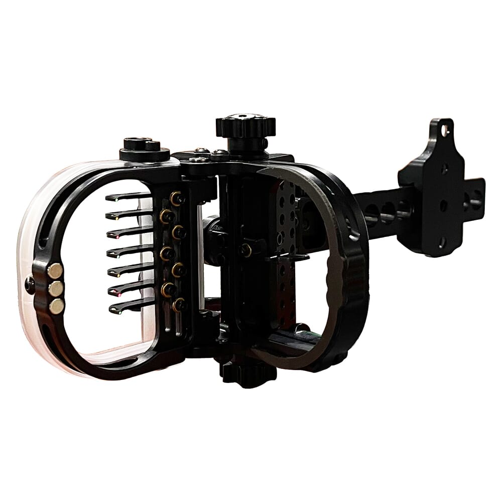 From 3D tournaments to hunting, Option Archery’s line of premium Bow Sights reigns supreme. One of their most notable features is their ability to switch between a single-pin and a multi-pin configuration without having to change sights This allows you to enjoy the benefits of both types of sights in the same bow setup. When not in use, the multi-pin sight folds away to allow you to use the adjustable single-pin for an unobstructed view of your target, but it can quickly be rotated into view and secured with powerful magnets. The multi-pin sight features dual tracks for tighter pin gaps, allowing you to precisely sight in your yardage, and pins can be removed to suit your individual needs. These sights also feature 3rd axis leveling, have micro windage/elevation adjustments, and the entire sight frame is moveable to provide course adjustment to maximize your yardage and range. Other features include a glow ring to help find your sight frame in low light environments, and a light can be added to enhance the performance of the fiber optics. In addition, these sights are precisely machined out of solid aluminum including the pins (unlike sights of a lesser quality that use plastic), and all components are proudly made in the U.S.A.