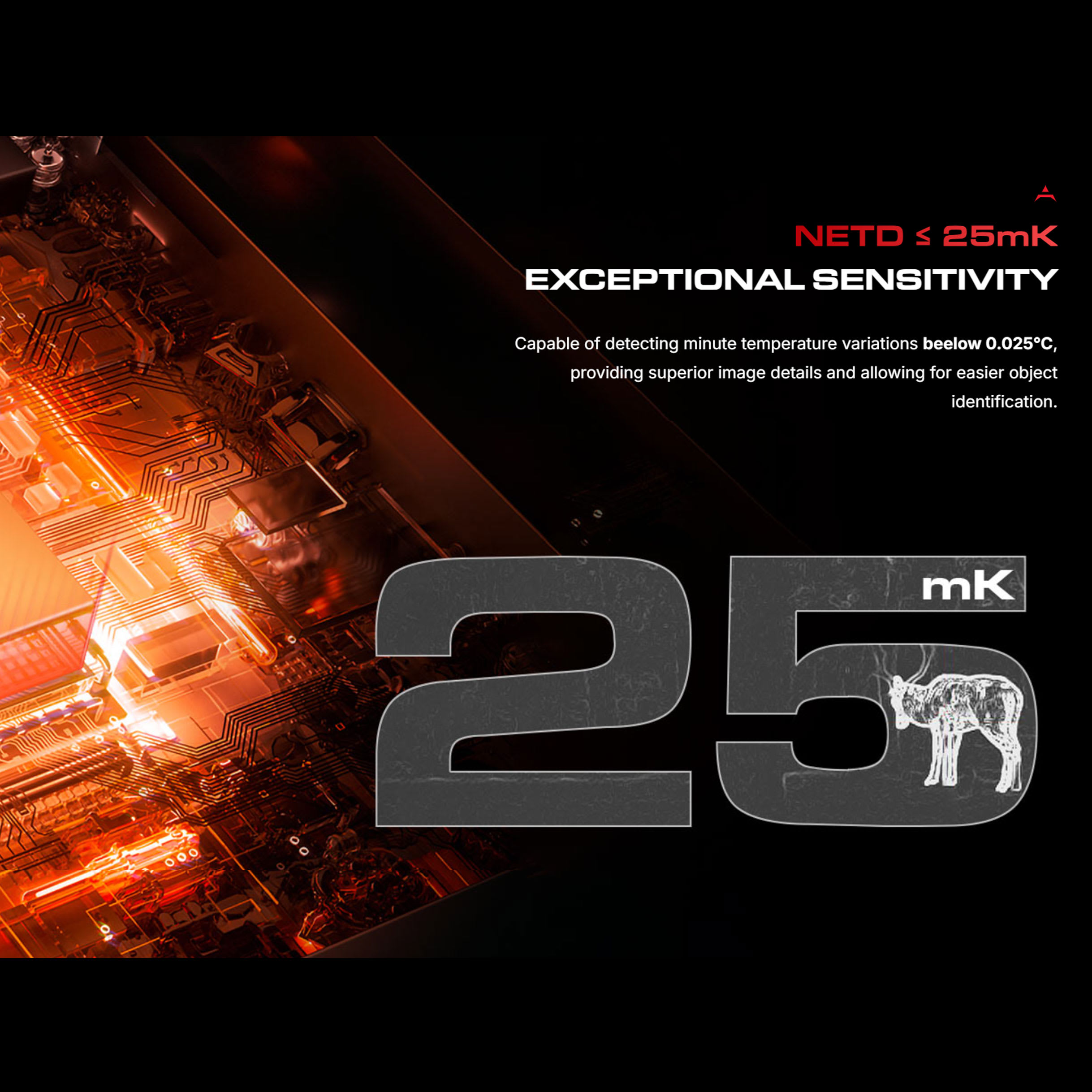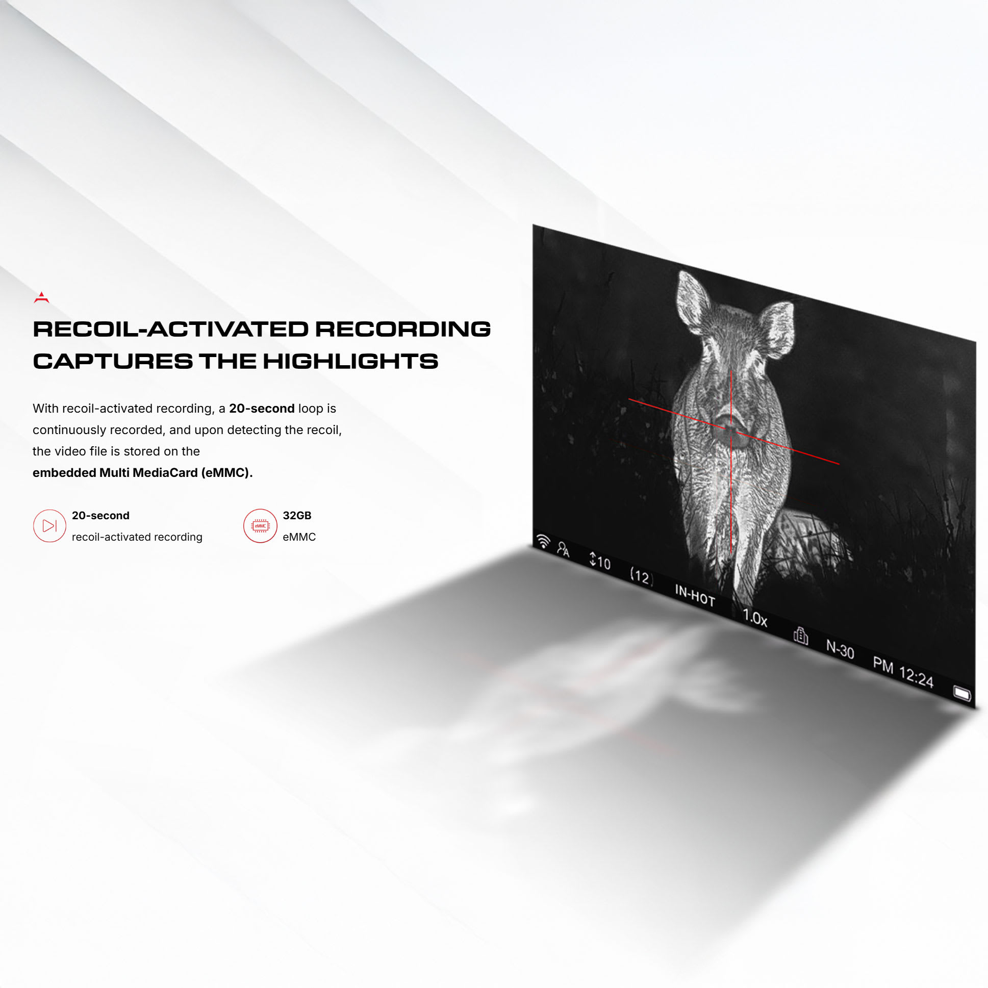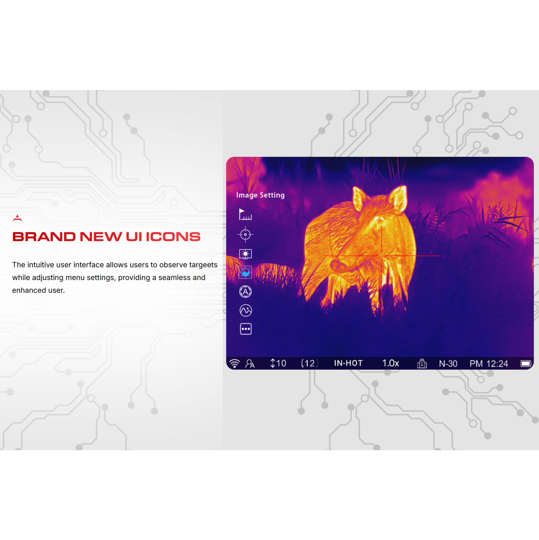 The Ocelot OC2-19 is a compact and lightweight multifunctional thermal imaging device with a 19mm lens and 30mm of eye relief. It is streamlined, balanced and lightweight. Made from aircraft grade aluminum alloys, it weighs in at only 440g and easily mounts to the picatinny rail of your favorite rifle with the included cantilever mounting bracket and has been recoil tested for up to 6000j of force. It features a 3.2x base magnification and 2-8x digital zoom magnification that enlarges the target. With a 9.2°x6.9° field of view (FOV), you have a great sense of where the target is in relation to the environment. Resolution of the IPS display is 800x800 (true round display) and backs up the 256x192 thermal sensor allowing the Ocelot OC2-19 to sense targets at up to 900m. With a next generation vanadium oxide sensor, pixelation of 12µm (micrometers), 50Hz refresh rate and a Noise Equivalent Temperature Difference (NETD) of ≤25mK, you get an extremely sensitive device that performs even when environmental thermal contrast is low at great distances. The OC2-19 offers five thermal image display options, four reticle colors, five reticle styles and three independent scene modes to adapt to varying environmental conditions and user preferences. The 18650 removable/rechargeable battery provides up to 5 hours of use and can operate in temperatures between -22° and 131° F. Conveniently carry a couple extra rechargeable batteries to avoid having to ever leave the field due to dead batteries. The Ingress Protection (IP) factor rates at an industry leading IP67, providing 100% security against dust and submersion in up to 3ft of water. The Ocelot OC2-19 also features technologically advanced features such as PIP mode, Internal Digital Gyroscope, Electronic Compass, Mechanical Shutter, Integrated Microphone and easily accommodates firmware updates. The Ocelot OC2-19 offers Wi-Fi connectivity to your mobile device via the free PARDVision2 app and integrates 1024x768 digital image capture (.JPG) and 1024x768 video (.mp4) recording for your shot record that can be saved to the 32GB internal memory. All of the Ocelot OC2-19 lenses are multi-coated for peak performance and protection against the elements.
