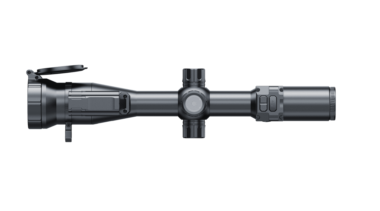 The Pantera PA6Z-25/50/LRF (ZOOM) is a compact and lightweight multifunctional thermal imaging device with both a 25mm and a 50mm lens. This innovative design provides the ability to seamlessly switch between a wide FOV (14.0°x14.0°) and narrow FOV (7.0°x7.0°) for increased scanning capabilities and target identification. The Pantera PA6Z-25/50/LRF also features 100mm of eye relief and integration of a Laser Range Finder that is accurate out to 1000m. It is streamlined, balanced and lightweight. Made from aircraft grade aluminum alloys, it weighs in at only 26.5oz (750g) and easily mounts to your rifle with the included 30mm rings. The 25mm lens features a 1.1x base magnification and 2-8x digital zoom magnification that enlarges the target. The 50mm lens features a 2.2x base magnification and 2-8x digital magnification. This technologically advanced design provides a great sense of where the target is in relation to the environment. Resolution of the IPS display is 800x800 (true round display) and backs up the 640x512 thermal sensor allowing the Pantera PA6Z-25/50/LRF to sense targets at up to 5000m. With a next generation vanadium oxide sensor, pixelation of 12µm (micrometers), 50Hz refresh rate and a Noise Equivalent Temperature Difference (NETD) of ≤20mK, you get an extremely sensitive device that performs even when environmental thermal contrast is low at great distances. The Pantera PA6Z-25/50/LRF offers six thermal image display options, four reticle colors, six reticle styles and three independent scene modes to adapt to varying environmental conditions and user preferences. The 18650 removable/rechargeable battery provides up to 5 hours of use and can operate in temperatures between -22° and 131° F. Conveniently carry a couple extra rechargeable batteries to avoid having to ever leave the field due to dead batteries. The Ingress Protection (IP) factor rates at an industry leading IP67, providing 100% security against dust and submersion in up to 3ft of water. The Pantera PA6Z-25/50/LRF also features technologically advanced features such as a Ballistics Calculator, PIP mode, Hot Target Tracing, Internal Digital Gyroscope, Recoil-Activated Recording, Loop Recording, Electronic Compass, Mechanical Shutter, Integrated Microphone and easily accommodates firmware updates. The Pantera PA6Z-25/50/LRF offers Wi-Fi connectivity to your mobile device via the free PARDVision2 app and integrates 1536x1536 digital image capture (.JPG) and 768x768 video (.mp4) recording for your shot record that can be saved to a 128GB removable micro SD card. All of the Pantera PA6Z-25/50/LRF lenses are multi-coated for peak performance and protection against the elements.