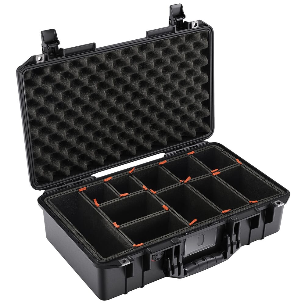 The 1525 Air Case by Pelican Cases is the perfect balance in size between Pelican�s 1507 Air Case and the 1535 Air Case, offering excellent security as well as durability. It features an ultra-durable construction of HPX2 polymer, a proprietary formula that rebounds without breaking, as well as honeycomb structural elements that are stronger than solid polymer. Like all the premium cases in Pelican�s Air Case line up, the 1525 Air Case is up to 40% lighter than cases of a similar class, but doesn�t compromise strength or durability. To ensure they could stand up to the rigors of heavy field use, the Air Cases are subjected to a series of tests: A drop test from 3 feet onto solid concrete, a 20-minute submersion in 3 feet of water, and a test involving a 28-pound steel dart dropped on all sides and corners of the case � the Air Case passed all of these tests with flying colors. In addition, the Air Case is equipped with press and pull latches, rubber overmolded handles, an automatic purge valve to balance air pressure, and a removable polycarbonate card holder.