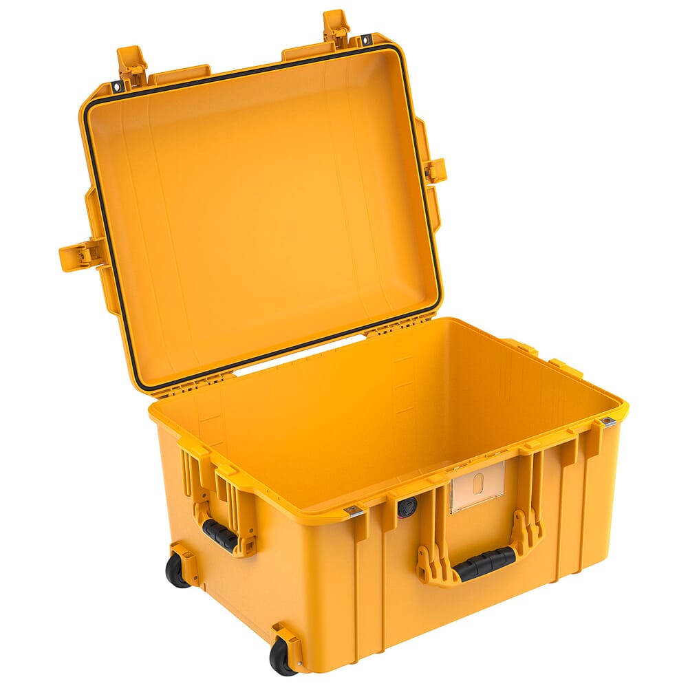 Protect your gear on the go with Pelican�s 1607 Air Case. It features a Proprietary Polypropylene Blend construction, giving the 1607 Air Case outstanding crush, shock, and impact resistance. To prevent water from seeping in, the 1607 Air Case features an EPDM O-ring seal, as well as a Hi-Flow Gore-Tex 3 Micron Hydrophobic Non-Woven purge valve which enhances water resistance even further and helps prevent vacuum-lock. The 1607 Air Case also features a folding carry handle on the top, and a retractable handle on one end with smooth rolling wheels on the other end promotes easy transportation. In addition, the 1607 Air Case features dual latches and reinforced pad lock protectors.