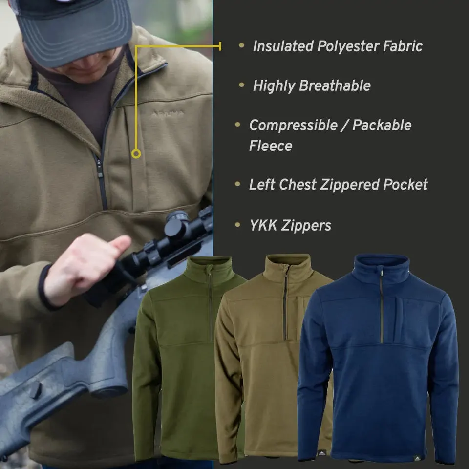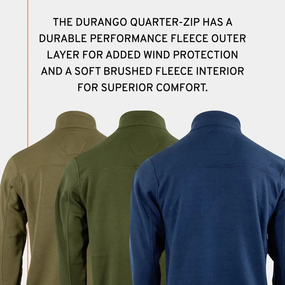 The Durango Quarter-Zip combines a durable performance fleece outer layer with a soft brushed interior for all-day comfort. Perfect for cool summer evenings or crisp fall mornings, this pullover offers warmth without bulk. Its traditional fit is relaxed through the chest, sleeves, and waist, allowing freedom of movement whether worn alone or layered. Functional, versatile, and built for all-season use, the Durango Quarter-Zip is a wardrobe essential for hunters and outdoor enthusiasts alike.