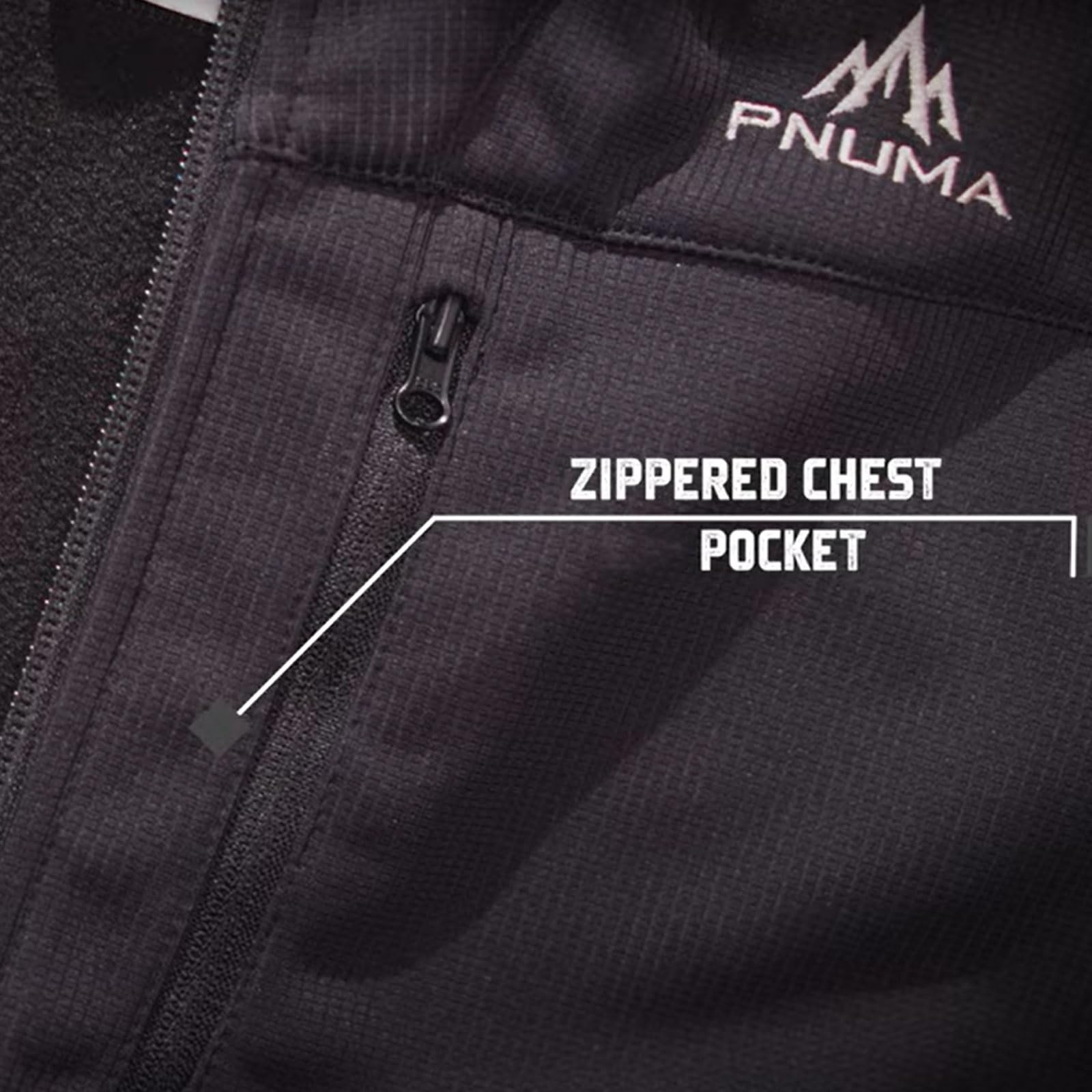 Pnuma’s Garrison Jacket combines functionality, style, and comfort. The interior is lined with 110gsm of premium fleece that wraps you in a cocoon of warmth and keeps bulk to a minimum. The exterior of the Garrison is windproof and water-resistant to ensure optimal resistance to wind and light rain and snow. The Garrison Jacket is treated with Polygiene OdorCrunch to effectively neutralizes and prevents the growth of odor-causing bacteria, as well as Polygiene StayFresh which actively resists odors. Together, these features ensure you stay fresh and undetectable throughout your outdoor adventures. Other features of the Garrison Jacket include strategically placed pockets for ample storage space for your essentials, allowing quick and easy access on the go as well as zippered handwarmer pockets provide immediate relief from chilly weather.