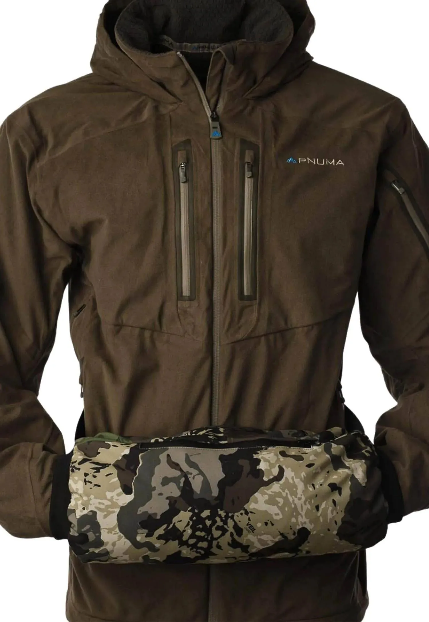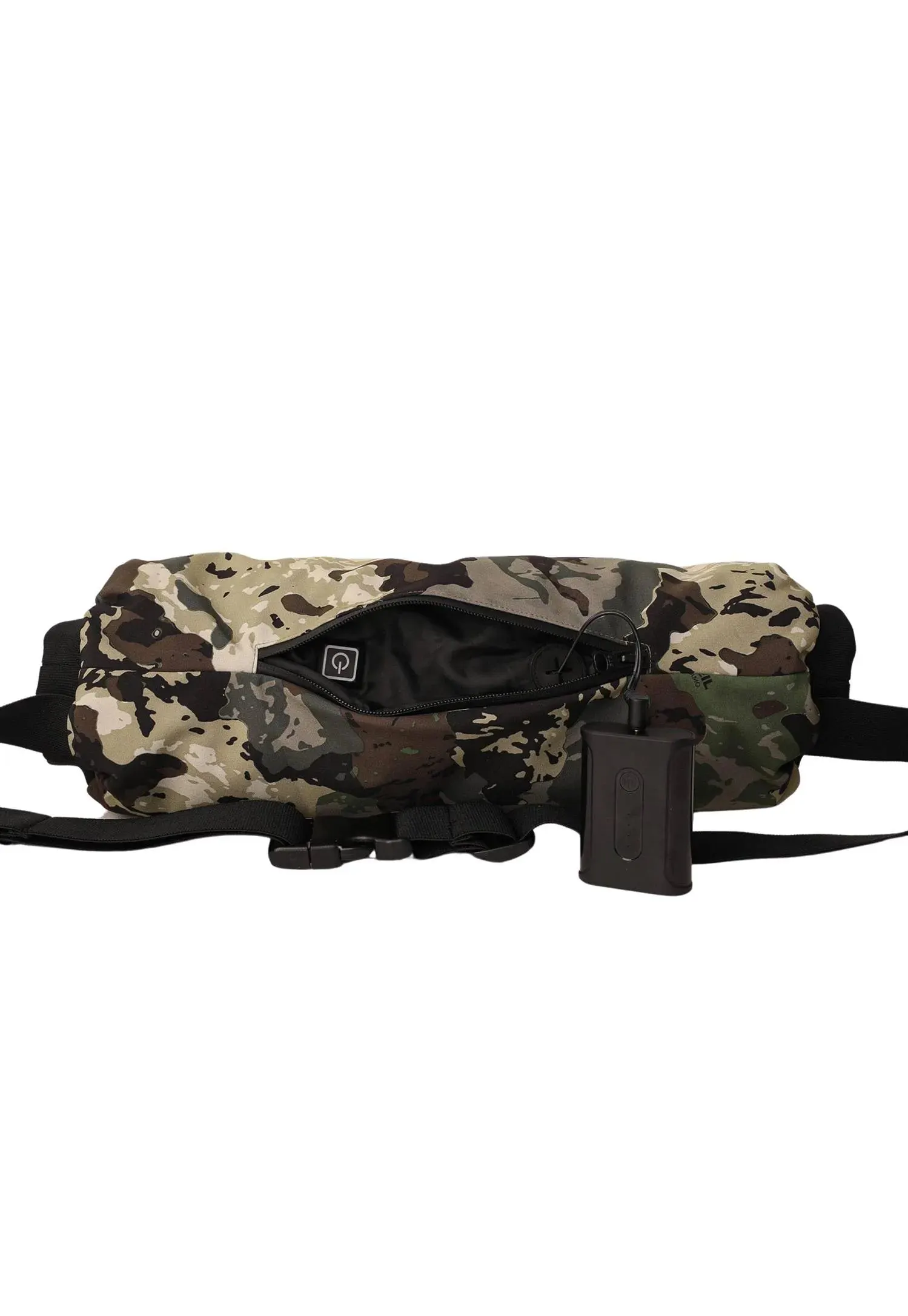 Stay warm and protected from wind and moisture with the Pnuma Heated Hand Warmer. Its water-resistant outer shell keeps the fleece-lined interior dry, while three adjustable heat settings let you customize your comfort for hours. A convenient zippered pocket stores the battery and small essentials, and the adjustable webbing strap allows you to wear it in front or rotate it to your back when not in use.Includes rechargeable Powerpack Battery and Charger – a $55 value!