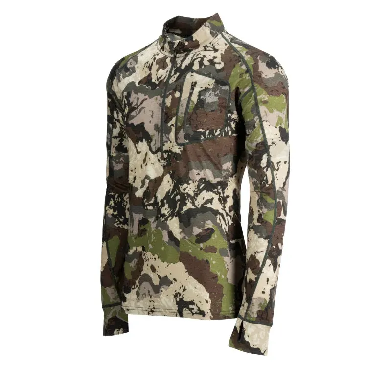 Elite comfort starts here. The Merino Wool Base Layer Pullover keeps you warm, dry, and odor-free under any conditions. Made from 100% merino wool, it naturally regulates body temperature, wicks moisture, and resists odors without added bulk. Flatlock seams and an athletic cut provide unrestricted movement, while the quiet, soft fabric keeps you stealthy in the field. A convenient quarter-zip allows quick ventilation, making this pullover ideal for early-season hunts or layering during winter.