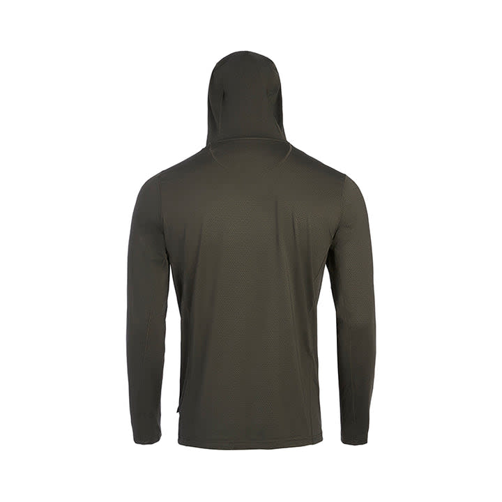 The Renegade Hoodie is a breathable, lightweight hunting layer designed for early-season pursuits, scouting trips, and cool-weather layering. Made from a durable poly/spandex blend, it delivers silent performance, excellent stretch, and moisture-wicking capabilities. The soft interior provides next-to-skin comfort, while the attached hood offers extra coverage. Its athletic cut allows easy layering under jackets or vests, making it a reliable companion in the field.