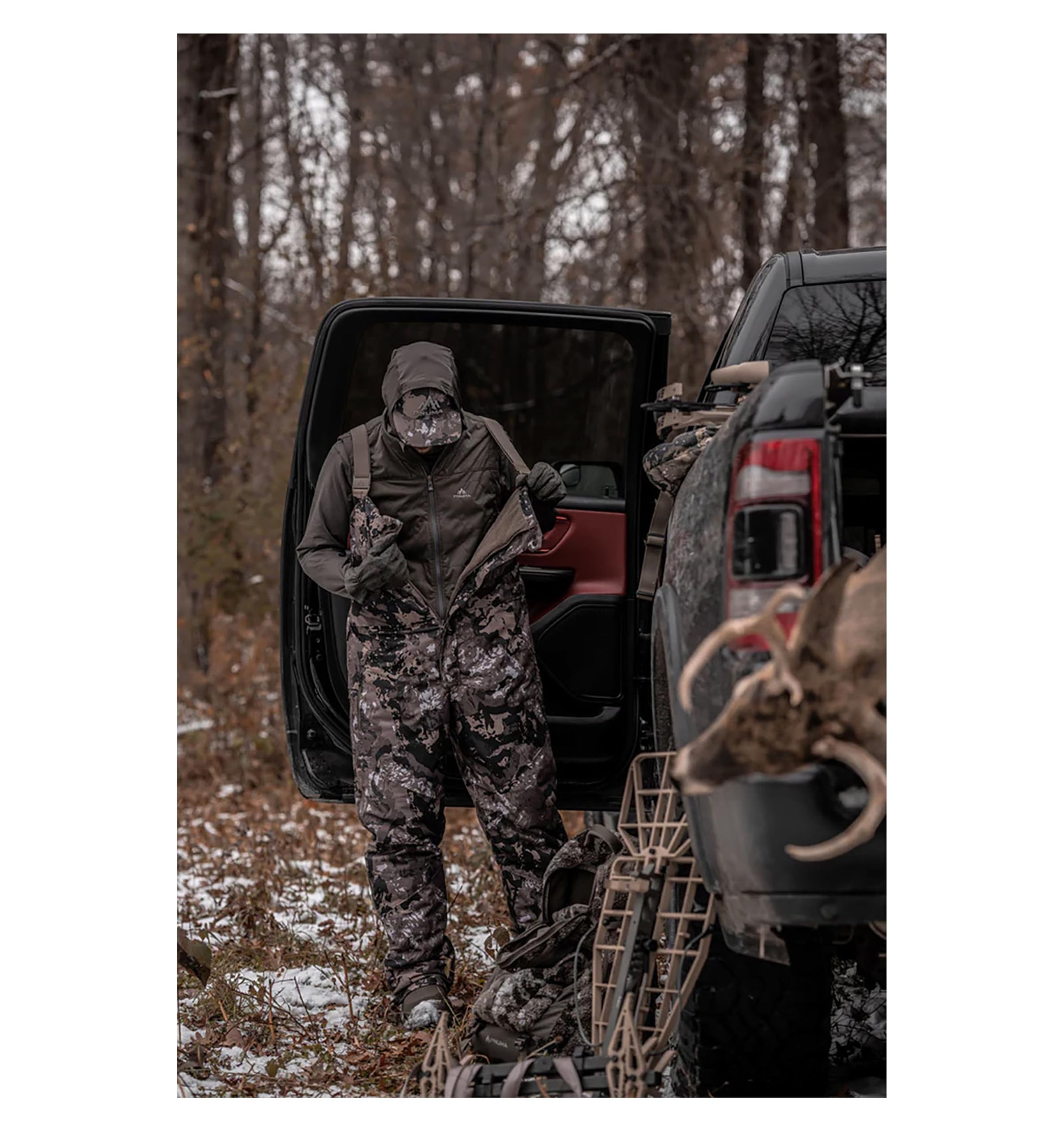 Pnuma's Torrent Bib delivers next level protection from the elements. It features a durable, whisper-quiet water-resistant outer shell that’s treated with PNUMADRY to repel rain, snow, and sleet with ease. The Torrent Bib's advanced membrane promotes breathability, allowing moisture to escape while retaining heat. Equipped with full-length side ventilation zippers, the Torrent Bib allows for efficient airflow to regulate body temperature, preventing overheating during strenuous hunts. The full-length leg zippers make for easy on and off, with two snaps on the lower leg to keep debris out and allow for adjustability.