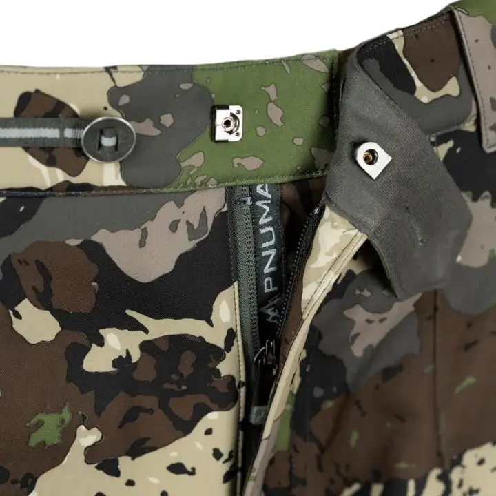 The softshell hunting pant offers quiet, reliable warmth with DWR water resistance. Mechanical stretch twill fabric and PnumaGrid™ fleece keep you comfortable and mobile. Anti-abrasion overlays, integrated kneepads, and waterproof zippers from ankle to thigh ensure durability and convenience for challenging hunts.