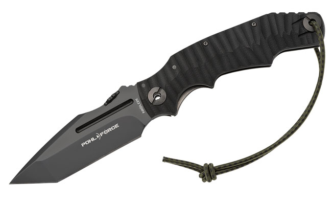 When your survival is on the line pack this POHL Force EOD Foxtrot Three Survival knife with a Tanto blade finished in PVD black, RotoBlock locking system, and a G-10 handle.
