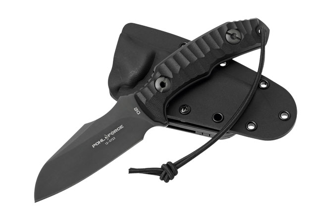 The modified Santoku blade measures five millimeters almost to the tip, and provides a dependable tool for you at all times. The full-tang extends to the end of the handle, which therefore can also be used as a striking tool. For a comfortable grip, you can choose a handle made of coarse textured Canvas Micarta® or G-10 fiberglass.