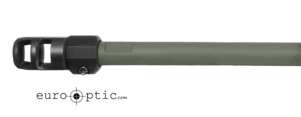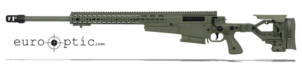This version of the Accuracy International AXMC is a .300 Winchester Magnum with a 26" threaded barrel with muzzle brake and features a green Left-handed stock.