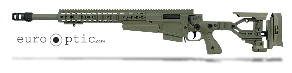 This version of the Accuracy International AXMC is a .308 Winchester with a 20" threaded barrel with muzzle brake and features a green left-handed stock.