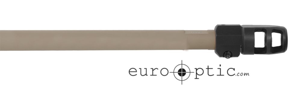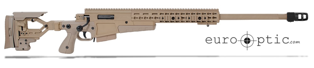 This version of the Accuracy International AXMC is a .308 Winchester with a 26" threaded barrel with muzzle brake and features a pale brown stock.