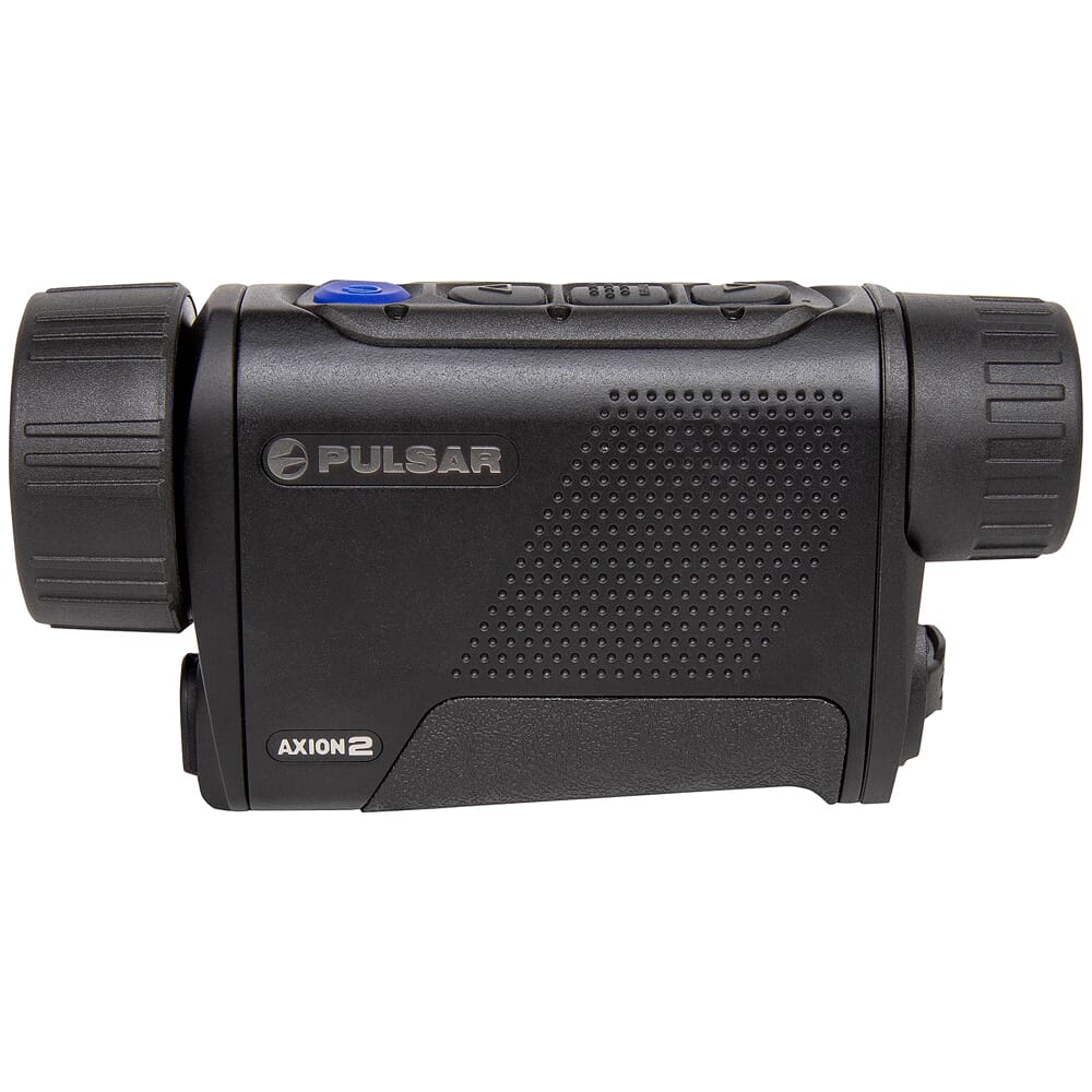 Pulsar’s Axion 2 XG35 delivers exceptional thermal imaging performance in a compact package. This pocket-sized thermal monocular is equipped with an ultra-sensitive 640x480 microbolometer capable of detecting heat signatures up to 1900 yards away. This makes the Axion 2 XG35 perfect for nighttime/predator hunting, allowing the user to scan large areas for prey. The Axion 2 XG35 projects sources of heat onto a 1024x768 AMOLED display for positive identification of targets, and is outfitted with integrated photo/video recording, a 16GB memory card, and is supported by the Stream Vision 2 app for sharing and storing your hunting experience. In addition, the Axion 2 XG25 features a durable magnesium alloy reinforced housing to protect the device from bumps and minor impacts, and has a IPX7 waterproof rating.