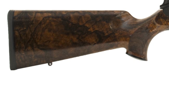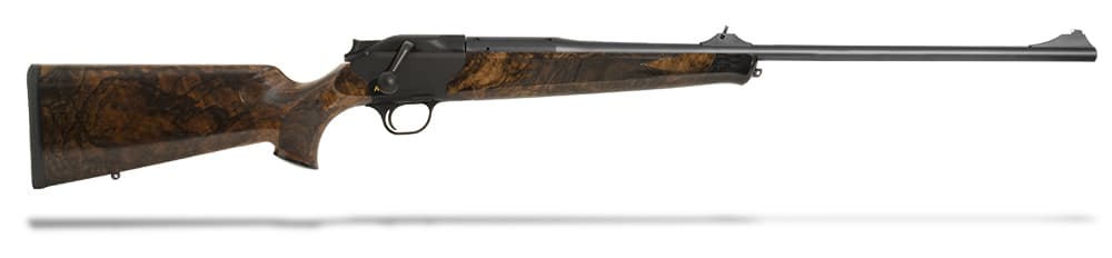 This stunning Blaser R8 Jaeger is a masterpiece. It comes with a free upgrade to grade 9 wood! This is savings of $2500 right out of the gate. It features a stunning black receiver and the uncompromising accuracy that is true of any Blaser. With its heavy hitting .375 HH cartridge this is the perfect rifle for any large or dangerous game. Because this rifle is in the R8 product line it comes with some inherent advantages, such as its straight pull bolt action which allows it to be extremely fast and its modularity. With all of these features combined with the overall beauty and style of this magnificent rifle there is no reason to not own one of these spectacular rifles.