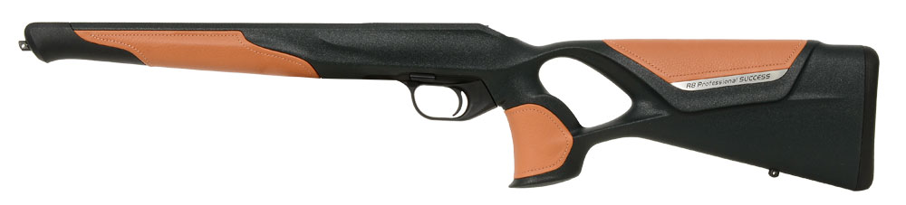 Customize your Blaser R8 Success rifle with this green with leather thumbhole stock receiver.