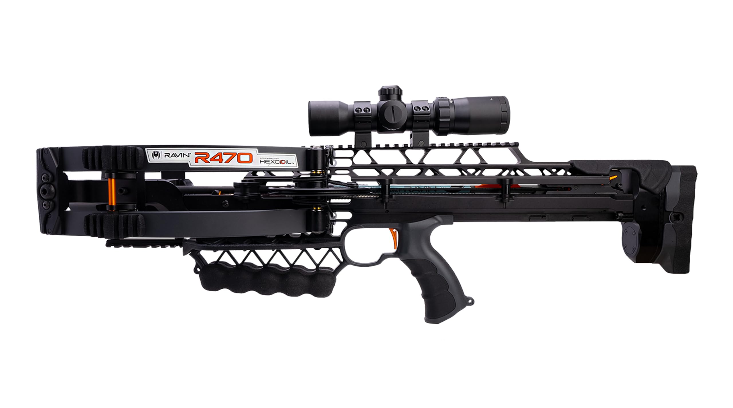 The Ravin 470 Crossbow R062 is a high-performance crossbow designed for serious hunters. Capable of shooting arrows at 470 FPS, this crossbow features the advanced HexCoil Cam System for unparalleled accuracy and efficiency. The durable platform increases string and cable life, while the silent operation ensures a smooth hunting experience. The 470 comes with a 100-yard illuminated scope, arrows, field points, and a quiver, making it ready for the field right out of the box
